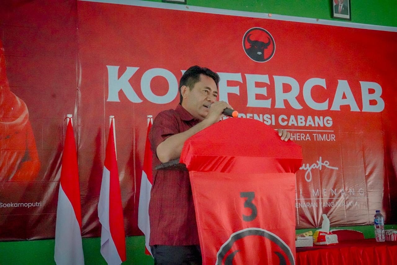 Hal itu disampaikan Bupati Ubaid Yakub pada saat menghadiri sekaligus memberikan sambubat pada KONFERCAB DPC PDIP Kabupaten Halmahera Timur, Selasa (02/12/2025) di aula pertemuan Kantor Desa Bumi Restu Kecamatan Wasile.