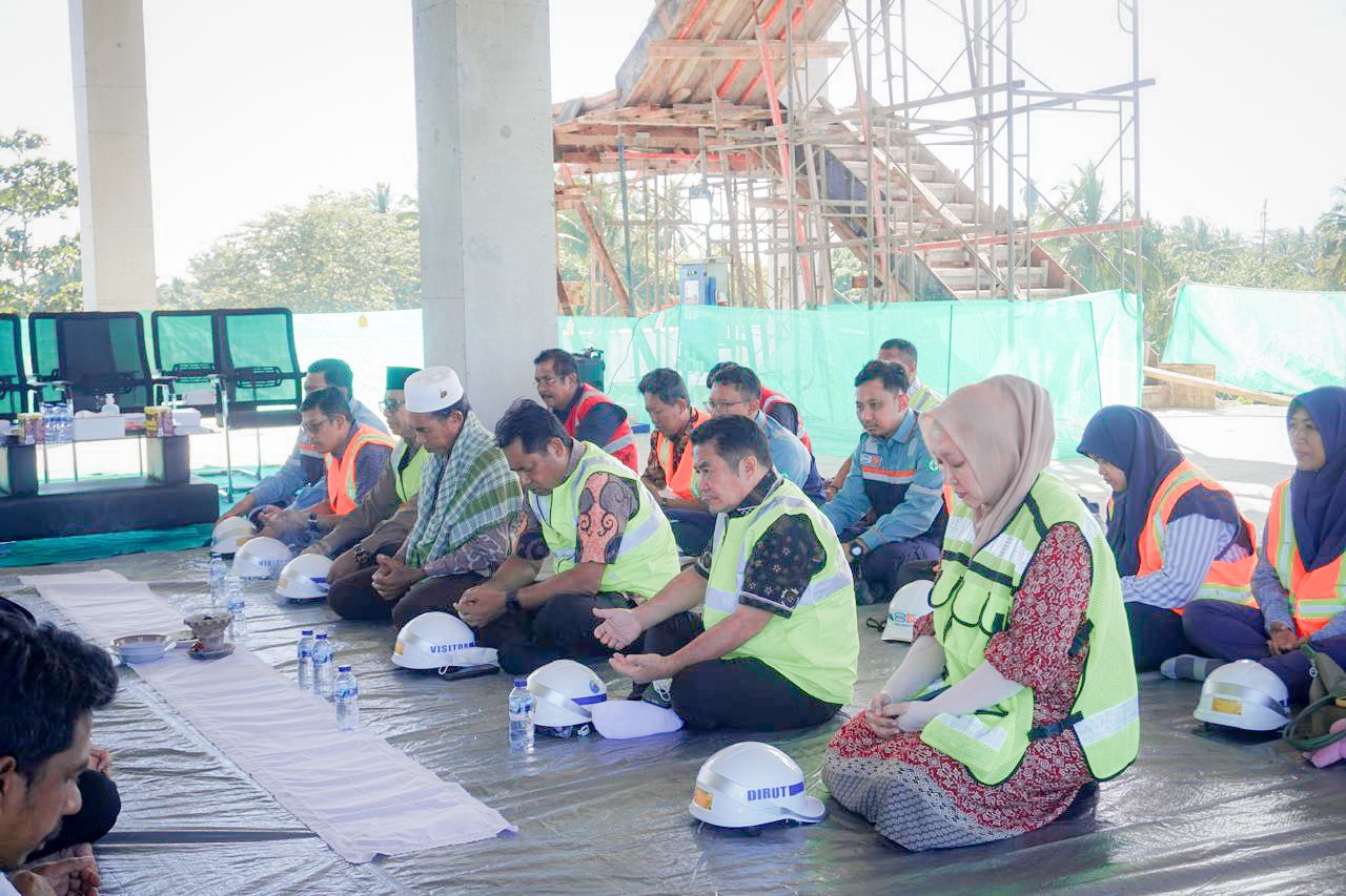 Bupati Halmahera Timur, Ubaid Yakub bersama Wakil Bupati Anjas Taher menghadiri pembacaan doa bertujuan untuk menutup atap gedung RSUD Maba tipe C yang sementara proses, Kamis (11/09/2025).