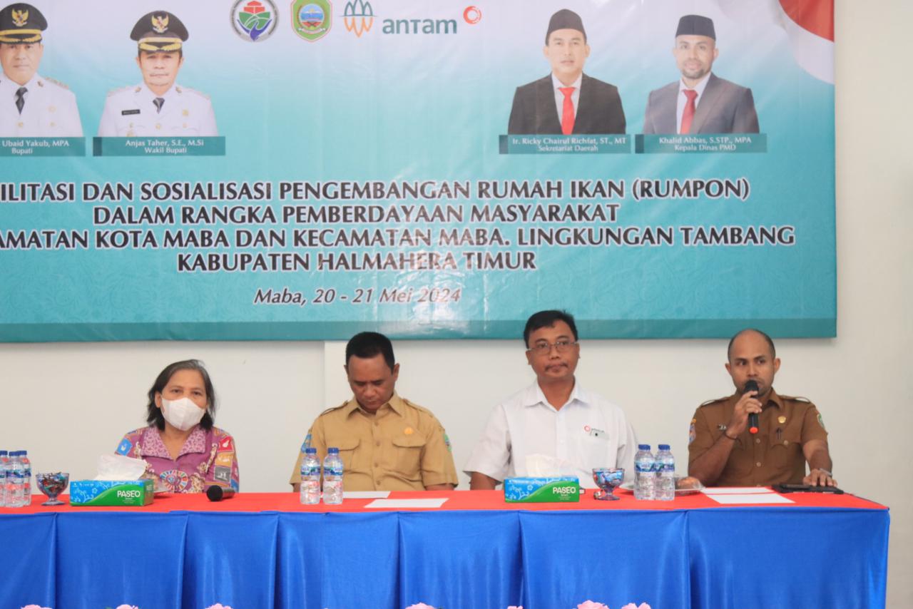 HALTIM, kapita.id – Dinas Pemberdayaan Masyarakat Desa (DPMD) Kabupaten Halmahera Timur (Haltim) Maluku Utara (Malut) menggelar Fasilitasi dan Sosialisasi Pengembangan Rumah Ikan (Rumpon) di Kecamatan Kota Maba dan Kecamatan Maba.