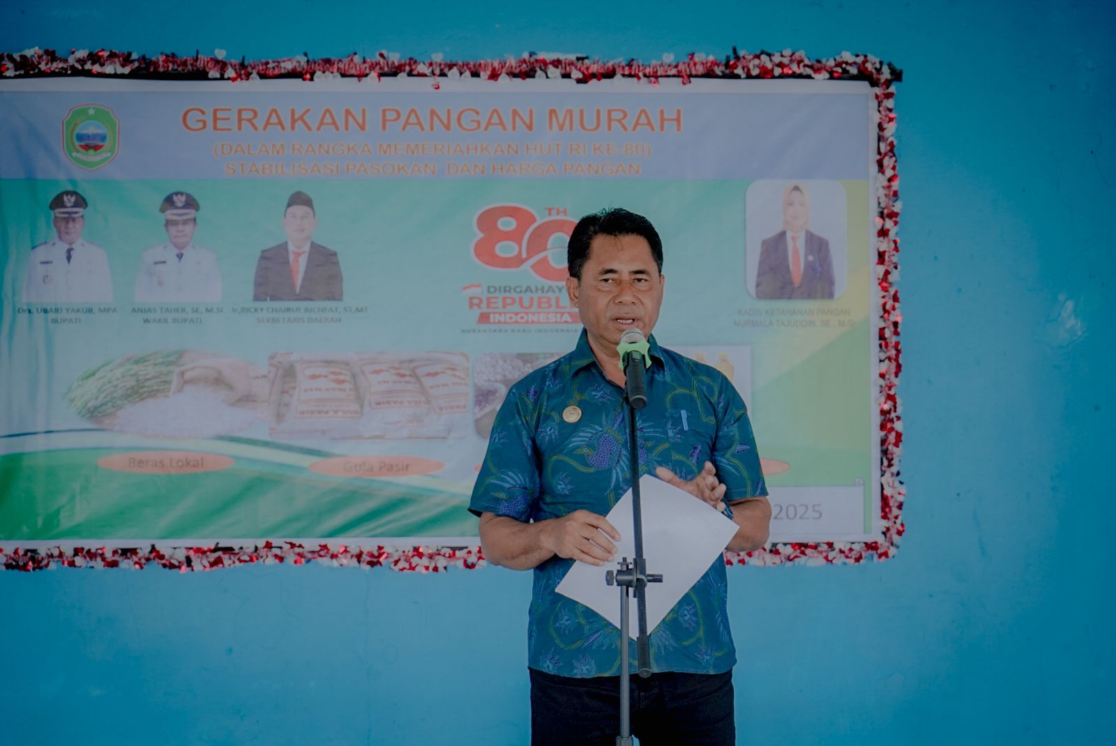 Bupati Ubaid mengatakan, kegitan Gerakan Pangan Murah hari ini dilaksanakan secara serentak di seluruh Indonesia.