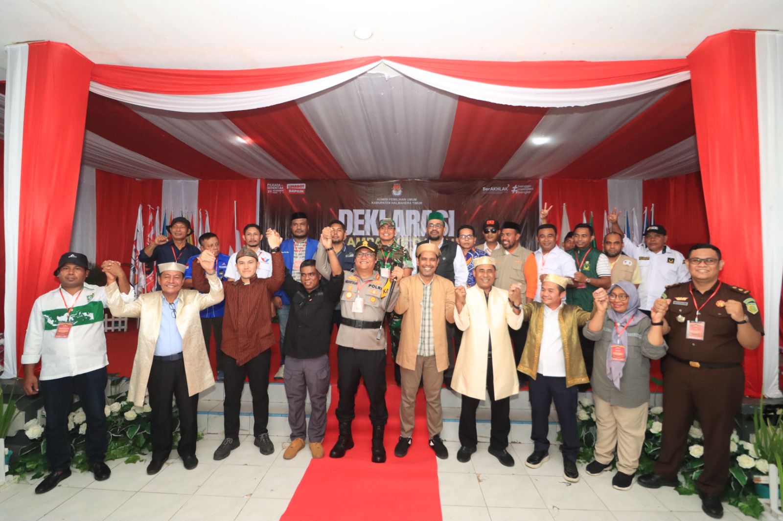 Deklarasi juga dihadiri Ketua dan Anggota KPU Haltim, Ketua dan Anggota Bawaslu Haltim, Kepala Kesbangpol Haltim, Kapolres Haltim, Kejaksaan Negeri Haltim serta pendukung dan simpatisan kedua pasangan calon.