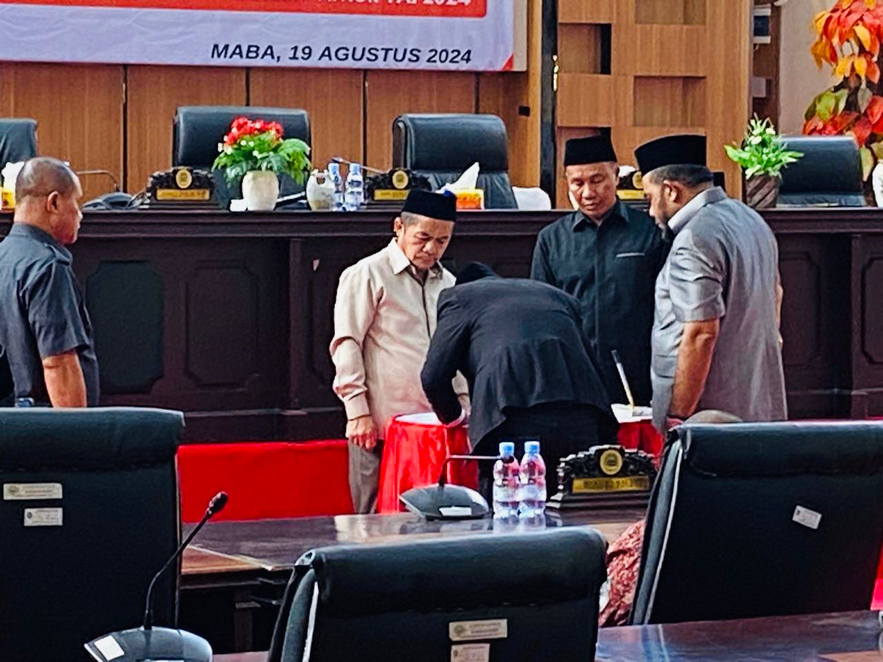 Pengesahan KUA-PPAS Perubahan tahun Anggaran 2024 dilakukan pada Rapat Paripurna Ke- 9 Masa Sidang Ke-II tentang Pengesahan Perubahan KUA-PPAS di ruang Rapat DPRD Haltim, Senin (19/08/2024).
