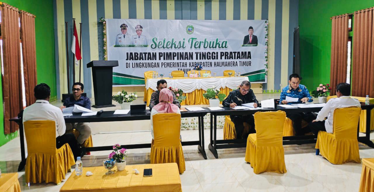 HALTIM,kapita.id- Melalui tahapan dan hasil penilaian seleksi Administrasi, Assessment, Rekam Jejak, Penulisan Makalah dan Wawancara Seleksi Terbuka Jabatan Pimpinan Tinggi (JPT) Pratama di Lingkungan Pemerintah Kabupaten Halmahera Timur.